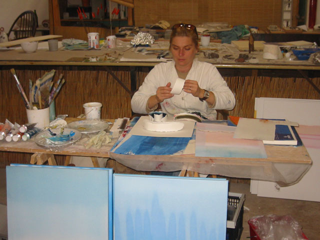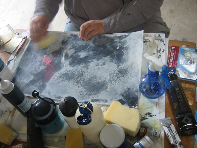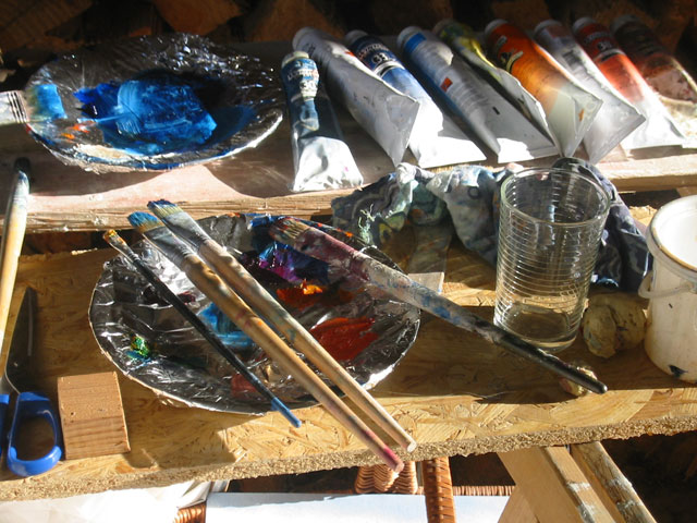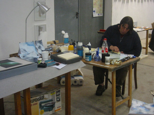 In diesen 10 Tagen Künstlersymposium gibt es kein vorgegebens Thema, sondern die Idee vor Ort gemeinsam zu arbeiten, sich auszutauschen und auch die eigene künstlerische Arbeit in der Runde zur Diskussion zu stellen.