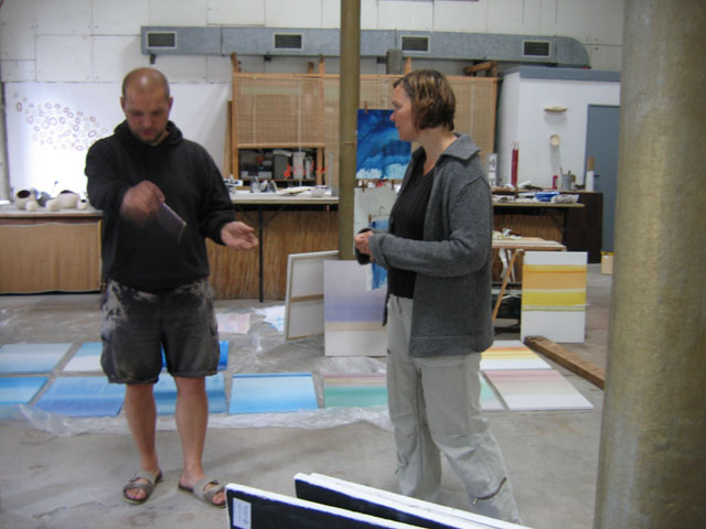 Zum ersten Mal nehmen in diesem Jahr die beiden Tschechen Vladimir Kovarik und Richard Vodicka am Atelierprojekt teil. Sie werden in den kommenden Jahren Teil der festen Künstlergruppe und die Anknüpfung Richtung Osten auch für andere Teilnehmer. Vladimir Kovarik getaltet eine Postkartenedition zur Dokumentation des Symposiums.