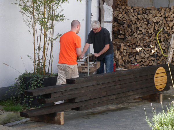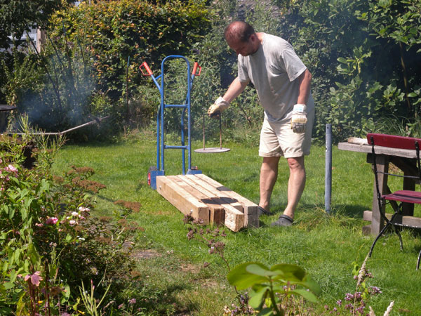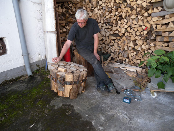 Beim 5ten Symposium orientiert sich das Arbeiten wieder an der Idee der "arte povera" ("arme Kunst"). In unserem Fall meint dies (vor-)gefundenes oder "wertloses/armes" Material ortsbezogen zu verarbeiten. Romana Hagyo (A) bringt Objekte vom Sperrmüll in Wien mit, Gaby Baltha arbeitet mit Samen aus dem Garten und Klaus Schmitz-Becker nutzt das vorrätige Brennholz vor Ort.