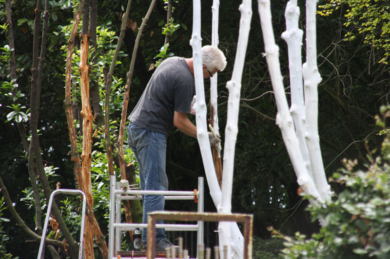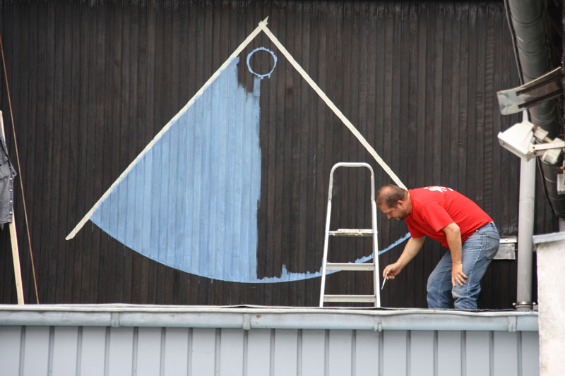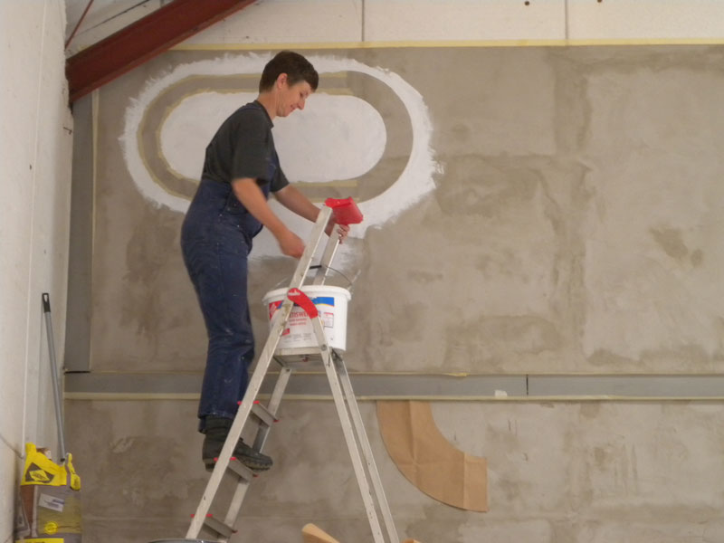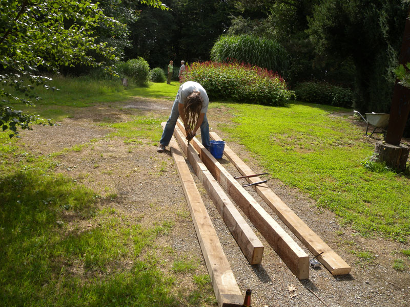 Dieses Symposium bringt 11 Künstler aus 3 Nationen zusammen. Viele Teilnehmer und einige sehr große Arbeiten! So entsteht einiges Neues für das Außengelände. Bei einem Symposiumsmuseumsbesuch im Museum Abteiberg, MG, 2010 äußerte Brigitta Heidtmann den Wunsch einmal ein "riesiges" Format zu realisieren. Das passierte dann in diesem Sommer an der Giebelwand der Galerie... eine wirkliche Herausforderung.